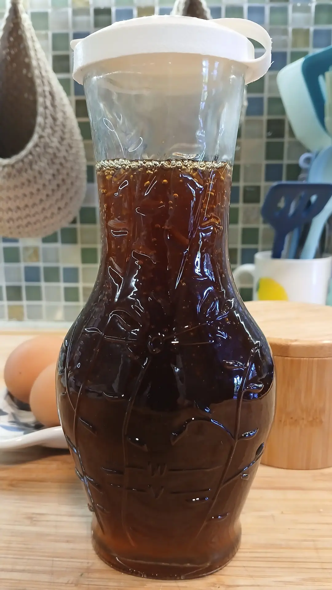 4. Before serving, whisk the syrup again and transfer it to a mason jar or glass serving bottle. Refrigerate for up to a month.